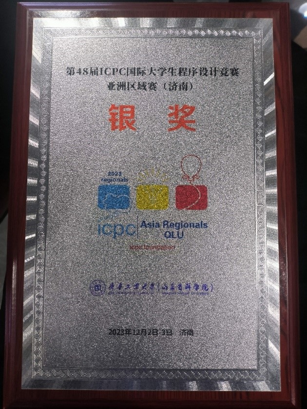 第48届ICPC国际大学生程序设计竞赛亚洲区域赛济南站于2023年12月2日-3日在齐鲁工业大学(山东省科乐鱼(中国))长清校区举行,经过激烈角逐,新疆大学计算机科学与技术乐鱼(中国)学子喜获银奖1项。