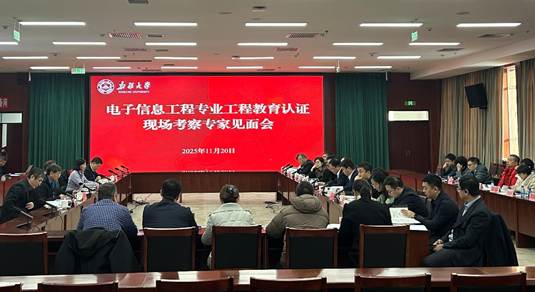 2025年11月20日至21日,受中国工程教育认证协会委托,以北京邮电大学林家儒教授为组长的专家组一行5人对我校电子信息工程专业进行现场考查。新疆大学党委副书记、校长马新宾出席见面会,党委常委、副校长刘正江出席反馈会。作为电子信息工程专业负责人,党委常委、副校长汪烈军全程参与为期2天的现场考查。